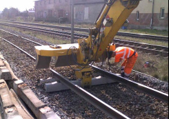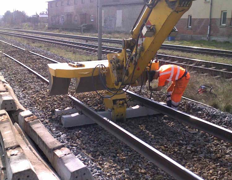 The hydraulic sleepers exchange unit purchased in 2015 is a multifunctional adapter for pulling out and building in the ballast bed, and for changing the sleepers. A two-way excavator or the prevailing carrier machine serves for taking up the sleepers exchange unit and for ensuring the hydraulic energy supply. The pulling out and building in of the sleepers is carried out by hydraulic bed-holder which can be rotated in 360° endless angles. The location and construction of the plier allows the secure and gentle pulling out, building in of every worldwide wooden and concrete beds. In order to increase the efficiency of the sleepers exchange unit the firmly mounted spoon segments were designed to a maximum volume. The digging depth of the unit can be changed as needed with the help of two adjustable rollers.