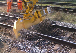 A keresztaljak kiemelése és beépítése egy 360°-os végtelen szögben forgatható hidraulikus aljfogóval történik. A fogó elhelyezkedése és konstrukciója lehetővé teszi minden elterjedt fa- és betonalj biztonságos és kímélő kiemelését, beépítését.